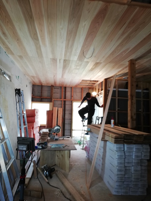岩泉出身の新人の佐々木も天井張りマスターして頑張っています。