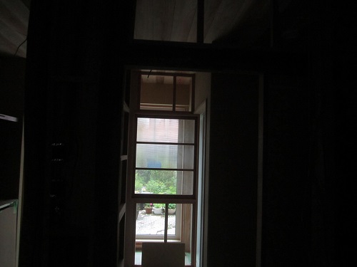 以前ご紹介のレトロ感ガラスの建具もはめ込まれて、取り外し可能な収めになりました。