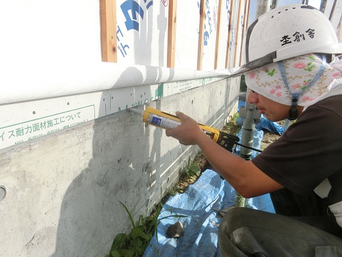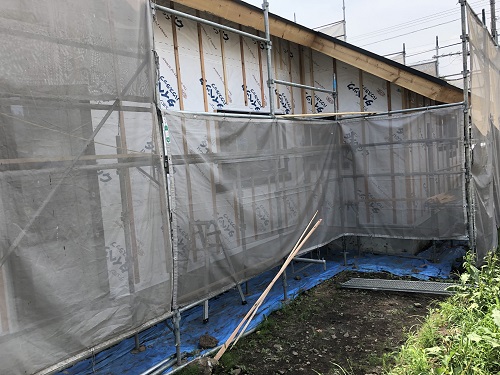 川口の新築工事は外皮断熱工事も始まりました。加えて基礎断熱工事も同時進行中です。
