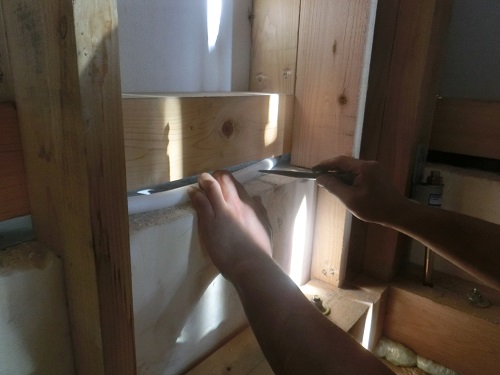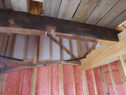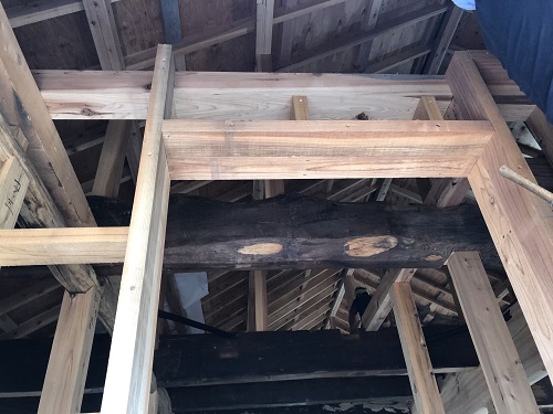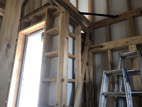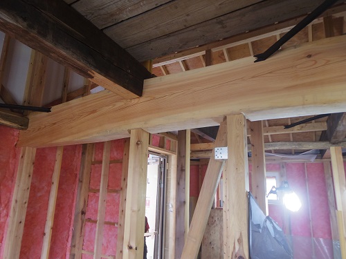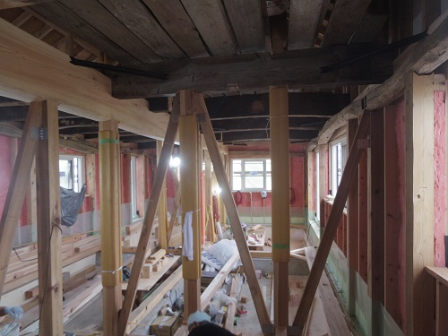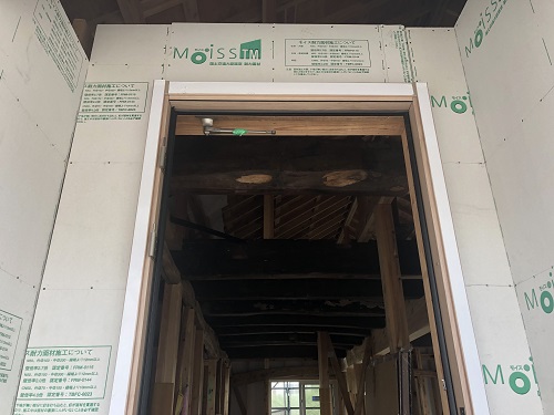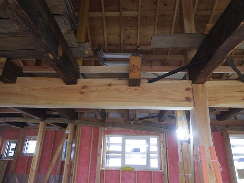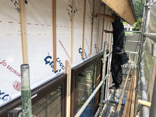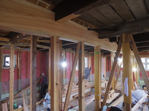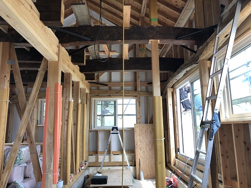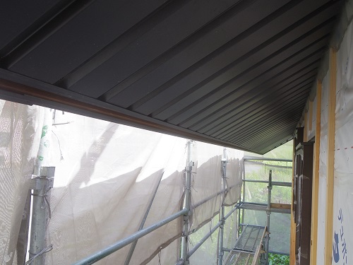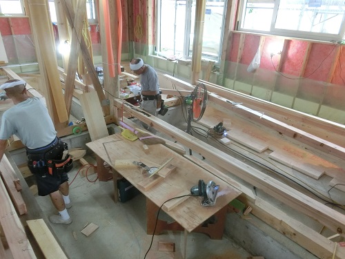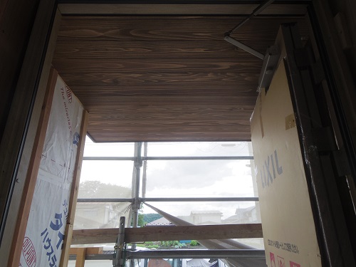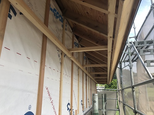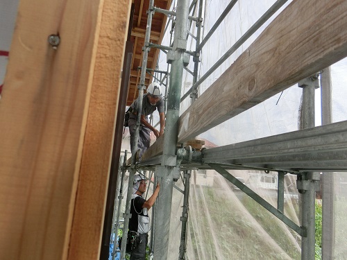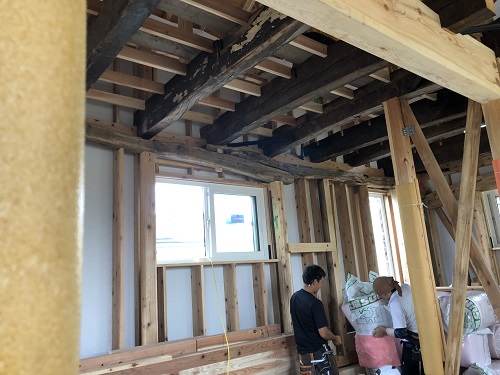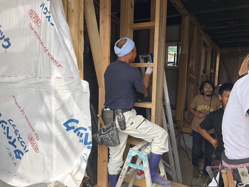 お盆休み前には外部を囲い終えたいと思っていたのですが、若い力が熟練の指導の下で、確りと頑張り、目標を達成し、内部の工事も順調に進みました。