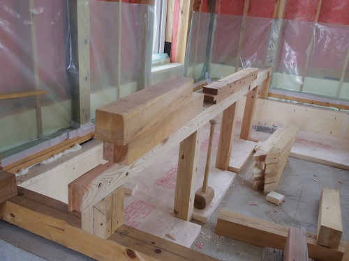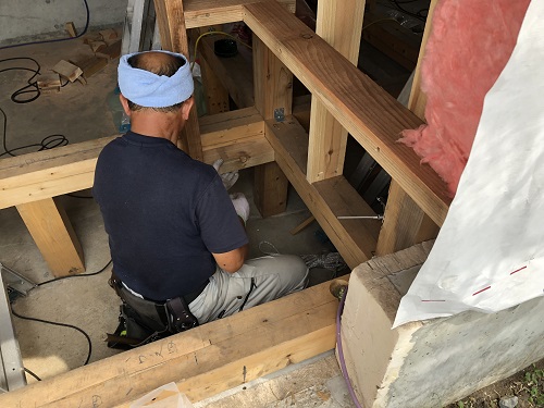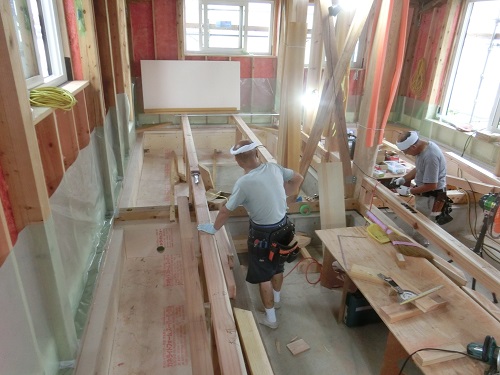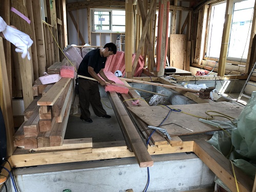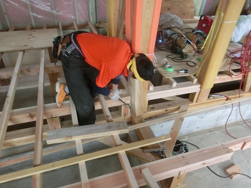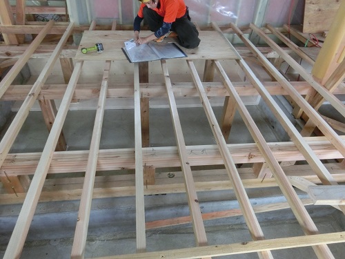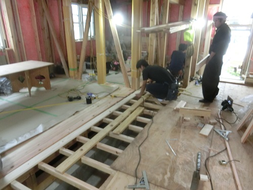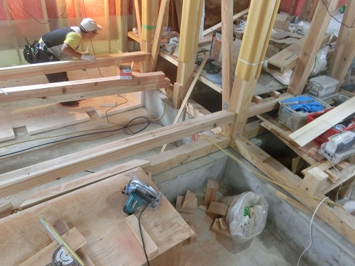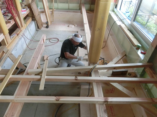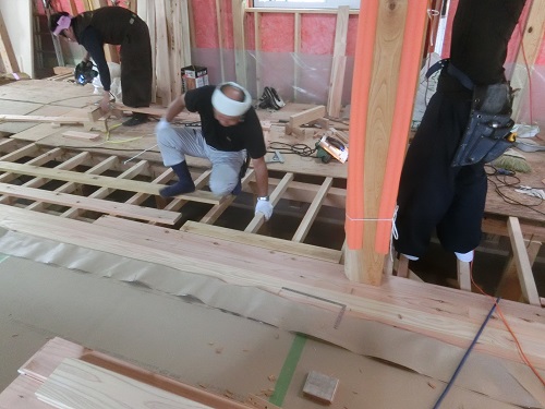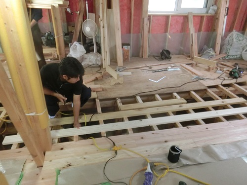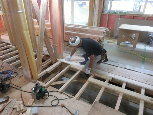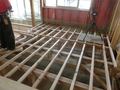 1階の床根太取り付けが進んでいます。