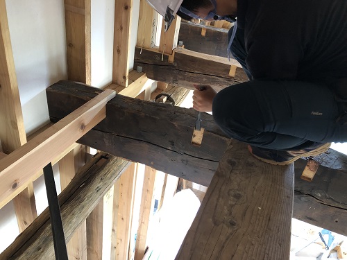 古材は見せる収まりを検討しています。