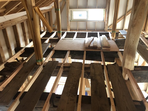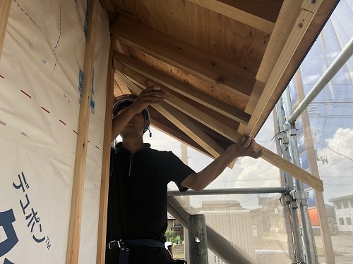 1階の床張込みと、外部軒天井工事が進みました。