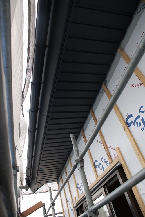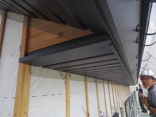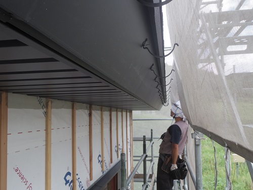 川口の新築工事は、外部破風の取り付けと雨樋の取り付けが進みました。大工多能職の有難さです。そのうちこうした仕事を若手も学んで覚えてくれる筈です。
