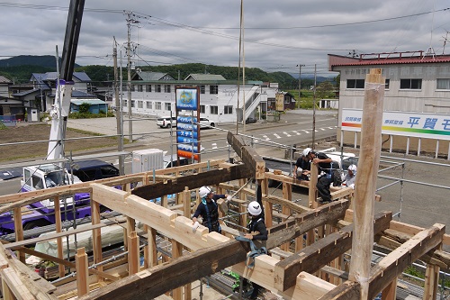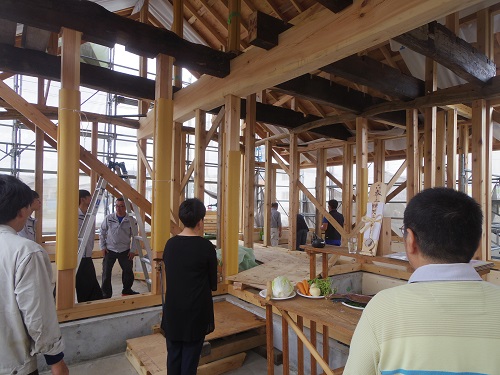 無事屋根を葺き上げた岩手町川口の新築現場では、昨日上棟式が行われました。
