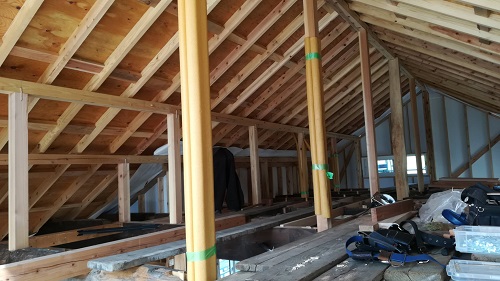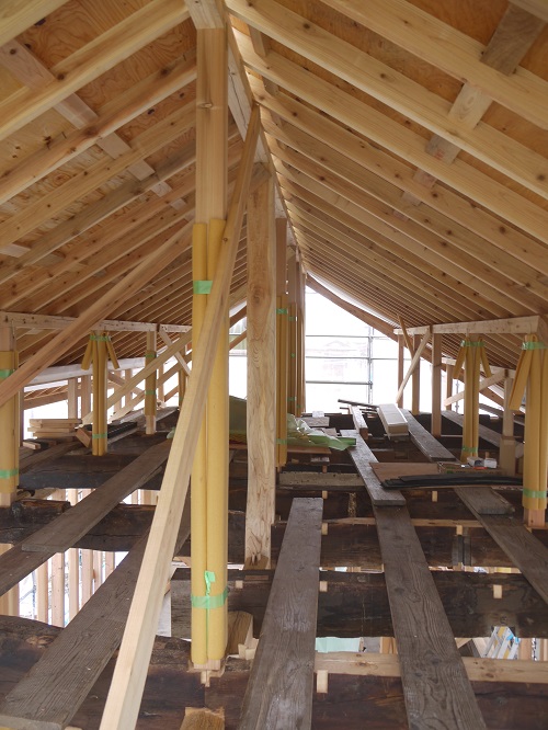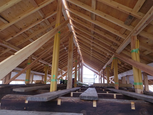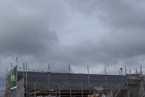 屋根を無事葺き終えた新築現場です。今日は鉈屋町の蔵応援で借り出されて現場には人が居ませんでした。自社施工会社の応援体制の良さとも思います。でも、こうして屋根が完成しているのは有難いことです。昨日までのここで作業したメンバーへの感謝の思い一入です。