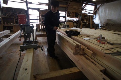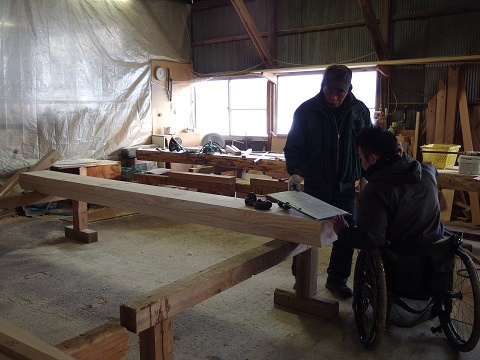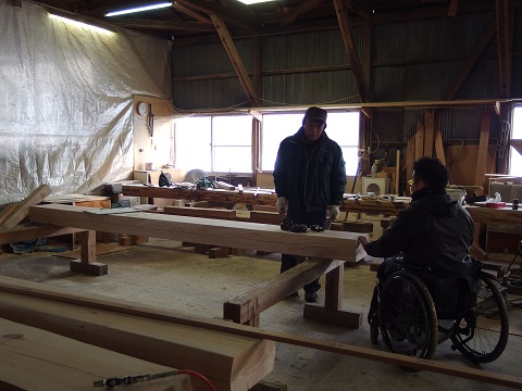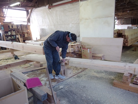 刻みの加工場に20代の若い大工と、車知栓継ぎの仕口が同居する写真は現代では貴重になりましたが、こうして伝統は引き継がれて行くものです。