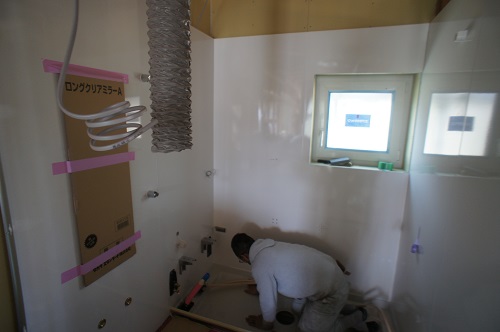 滝沢の新築工事の進捗です。内部ではユニットバスの取り付けも進みました。