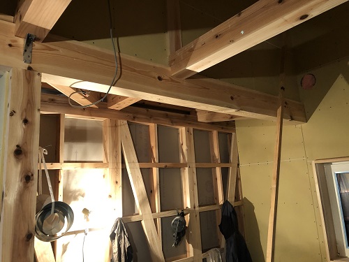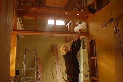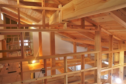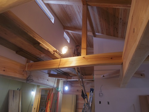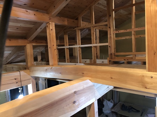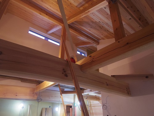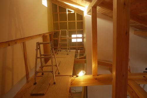 天候に恵まれて雫石の現場も外部破風板金工事を進めています。内部はこれまで同様に大工工事が淡々と進んでいます。