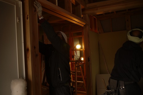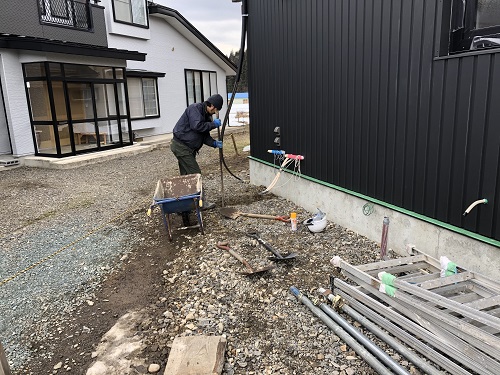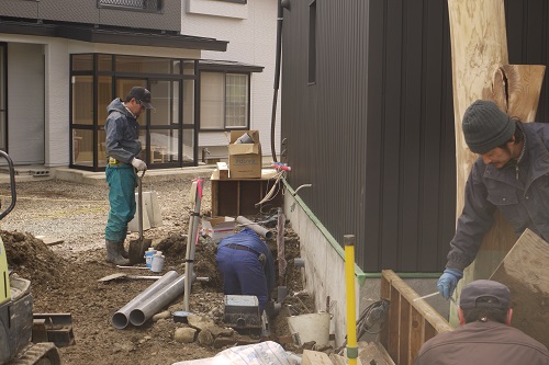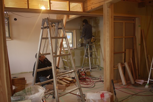 19日完成に向けて頑張っている新築現場です。基礎工事の段階で水が湧いてしまい、対策工事に予測外の時間を取られてしまいましたが、お施主様のご厚意を頂きましての工期延長での完成を目指しております。人手不足の世の中にあり、限られた人数でしか工事を進める事ができませんので、お施主様のご厚意は本当に有難いものです。