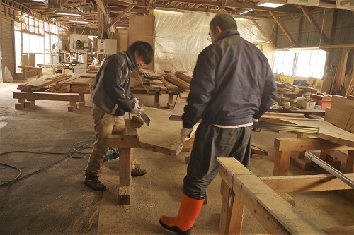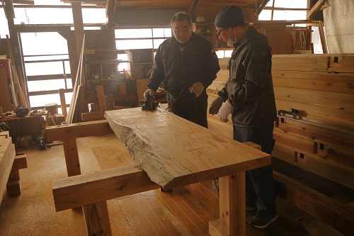 家具職人さんは保育園の構造材の修正挽をしているので、各現場を織り交ぜての仕事が出来るのも当社の特徴です。