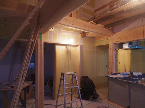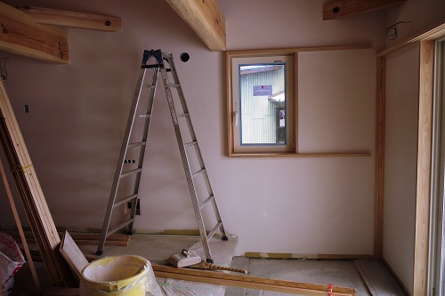 雫石の新築工事でも内装のパテ打ちが始まっていました。