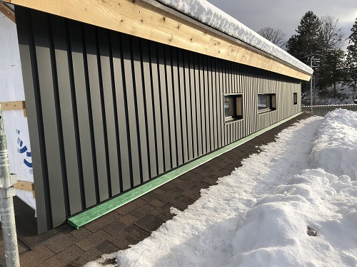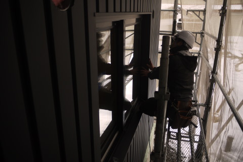 外部は開口部廻りや建物の出隅入隅などの役物板金を取付中です。