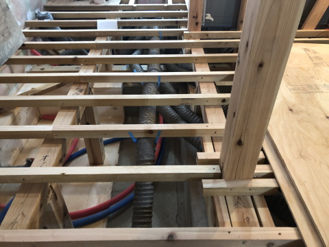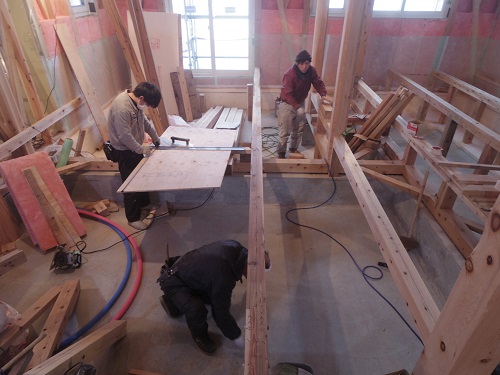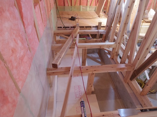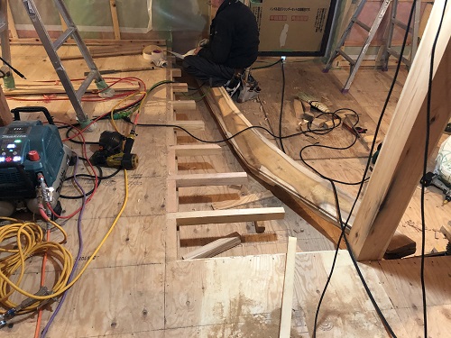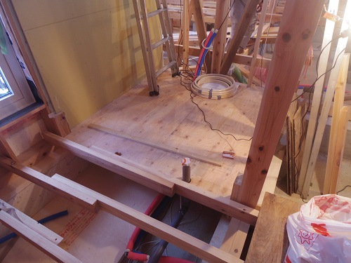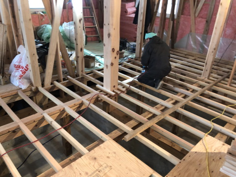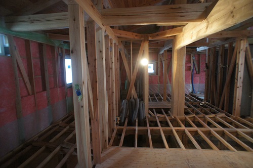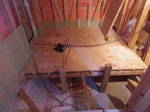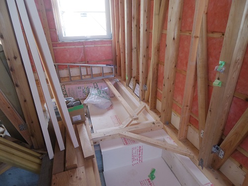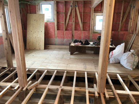 雫石の新築工事現場は床組みとユニットバスを設置する為の工事が進みました。