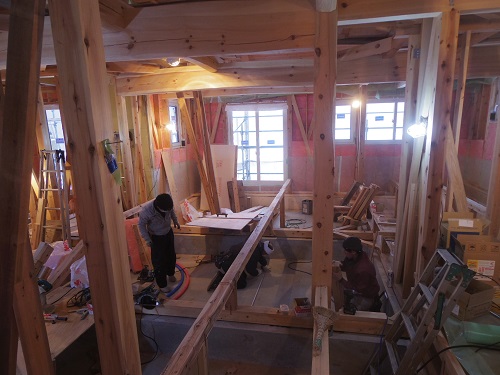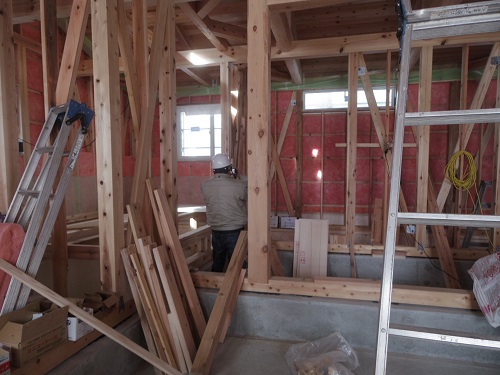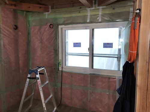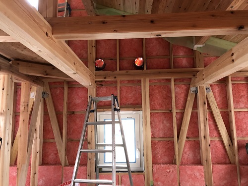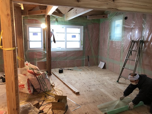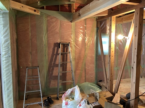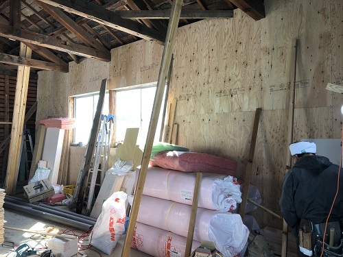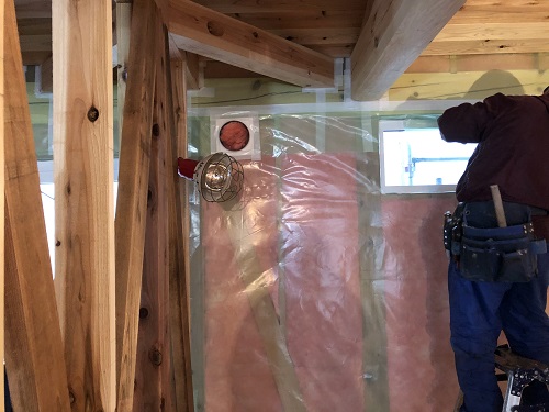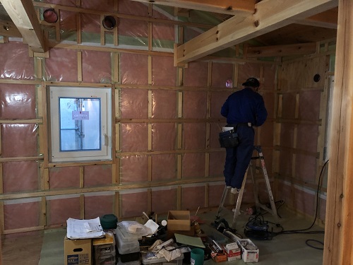 雫石の新築も内部充填断熱と気密・防湿工事が進んでいます。