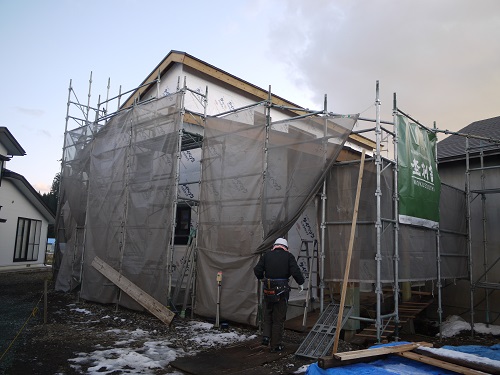外断熱下地工事が進んでいる雫石の新築現場です。