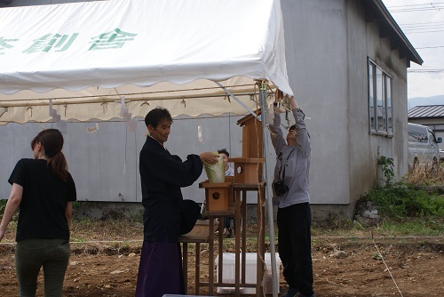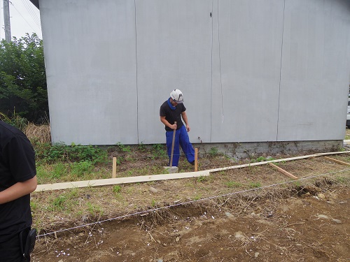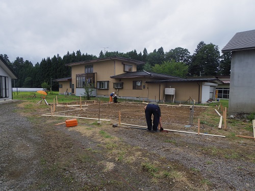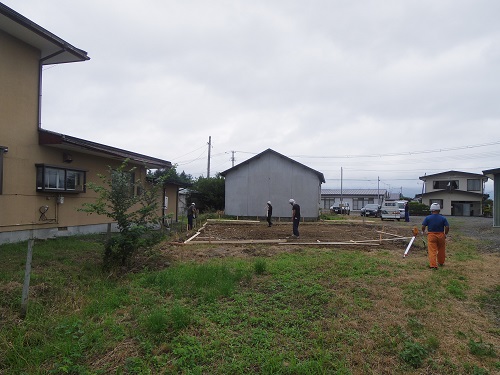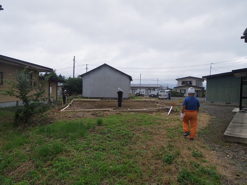 解体工事が完了して、起工式を行い、その翌日には遣り方が進められた雫石の新築工事です。