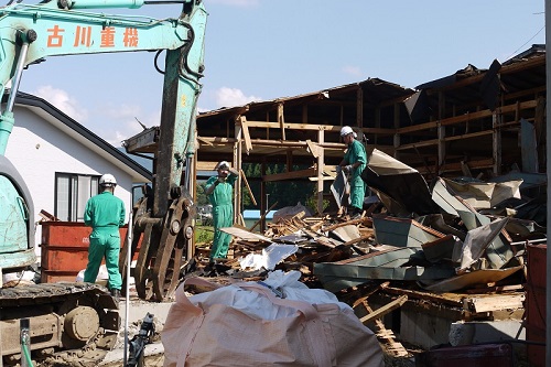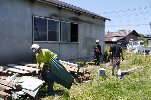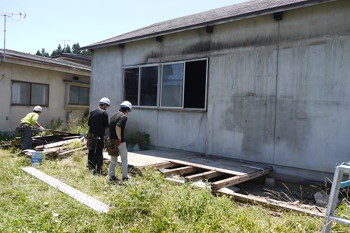 雫石町での新築工事もはじまります。まずは、既存建築物の申請上での問題個所の取り外し処分からです。