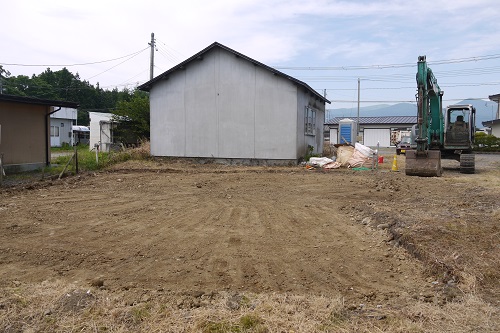 解体工事が完了した雫石の新築現場です。お盆休み明けからは基礎工事が始まります。