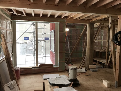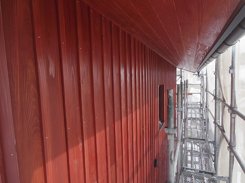 足場が外れて外観が露わになりました。内部は引き続きの階段や造作工事が進んでいます。