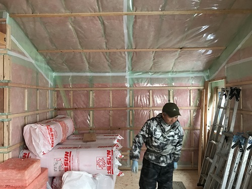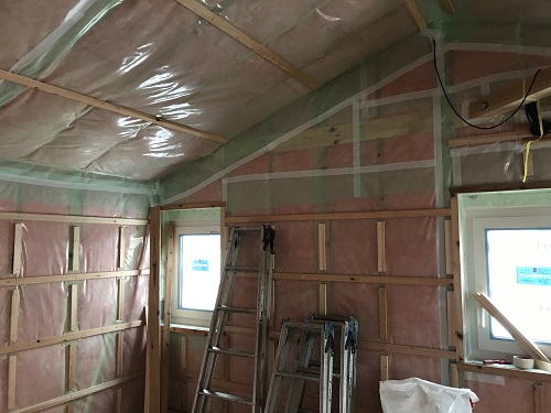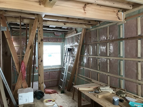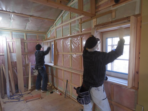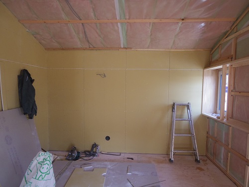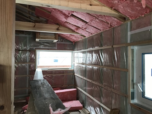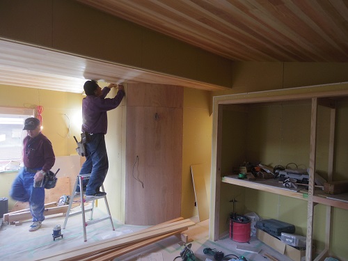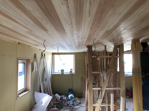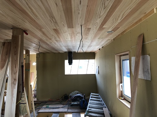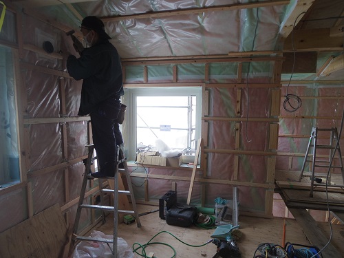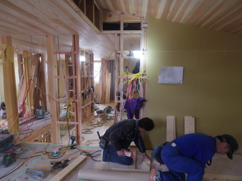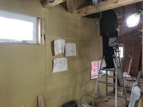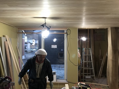外部工事と電気配線工事も進み内部工事を頑張る大工が集中する上田堤の進捗風景です。