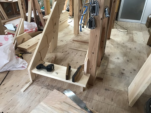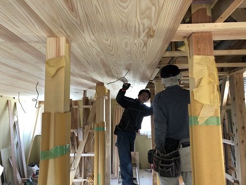 日曜日だけ休んで、祝日も仕事してくれていた大工さん達です。工期で逼迫されている訳ではなく、会社全体の工事の流れに沿って協力してくれているので、とても有難く掛け替えのない存在の方々です。と言っても誰と云うことなく全員皆が本当に大切なメンバーです。
