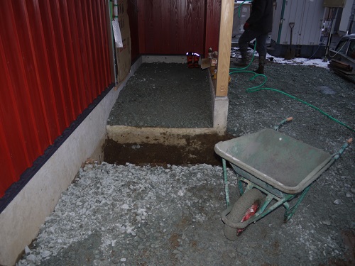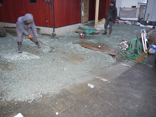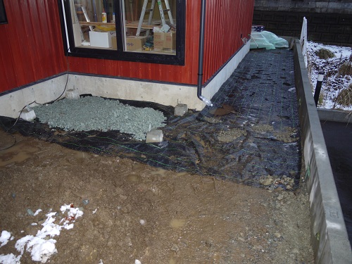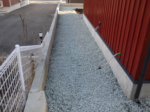 上田堤の新築工事は床張りや1階の天井工事も進みましたが、外周部に防草シートを敷き込んでの砕石敷き込みと玄関ポーチの段取りも進みました。天候を見ながら最良時を探して進めたいと思います。