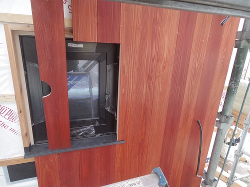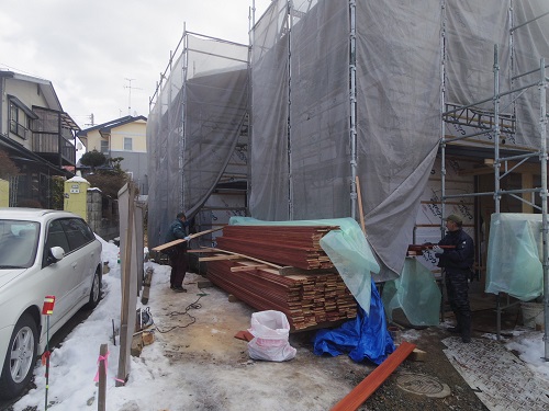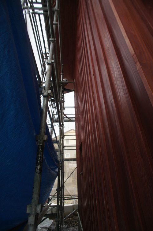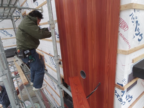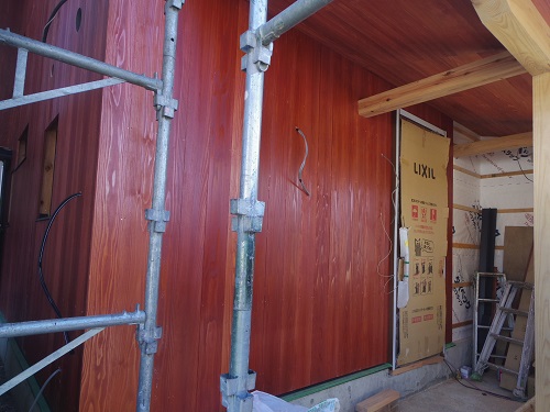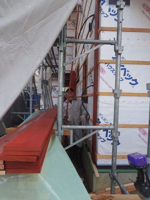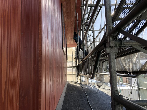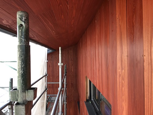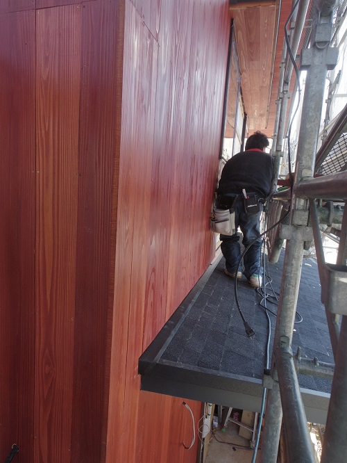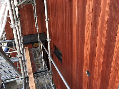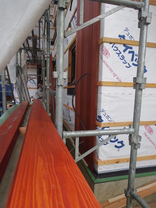 外壁加工は室内で行い外に渡たすの連携が良い感じです。