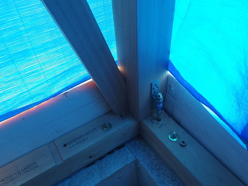 他現場に応援に出ていたので、上棟式後進んでいませんでしたが、20日から構造金物の取付他工事を再開しました。