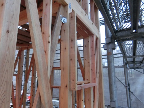 筋違いと間柱が絡むところの欠きこみ合わせも丁寧に出来ています。