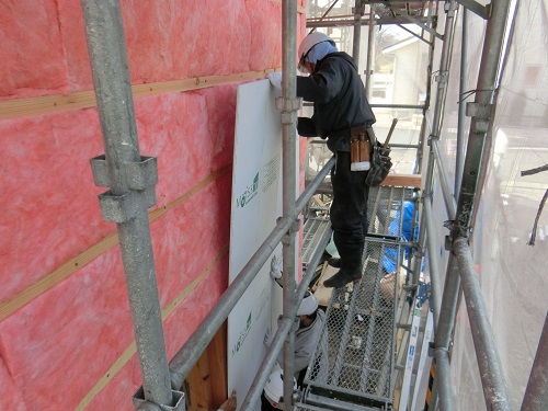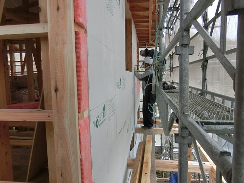 付加断熱となる外断熱と防火面材の張込みが進みました。