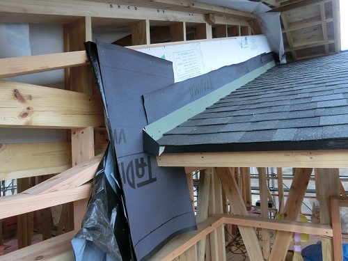 この屋根の軒先と壁との収まり板金は建物を長持ちさせる大切な部分です。