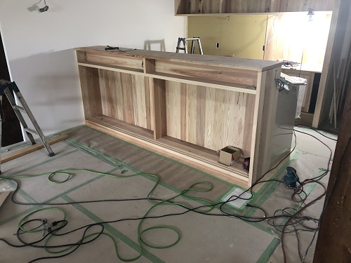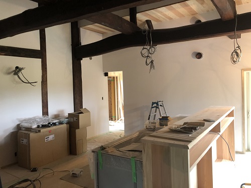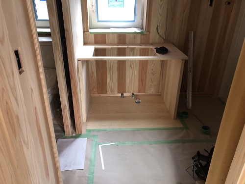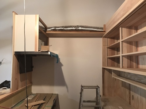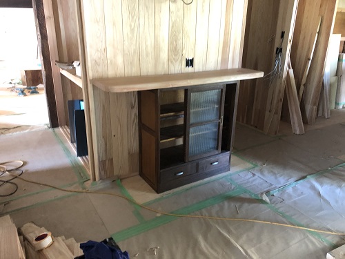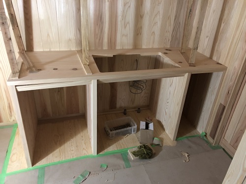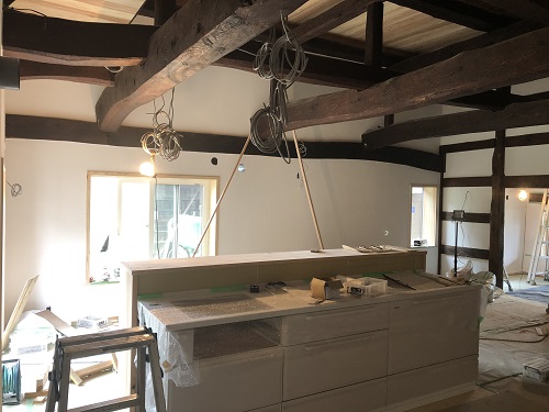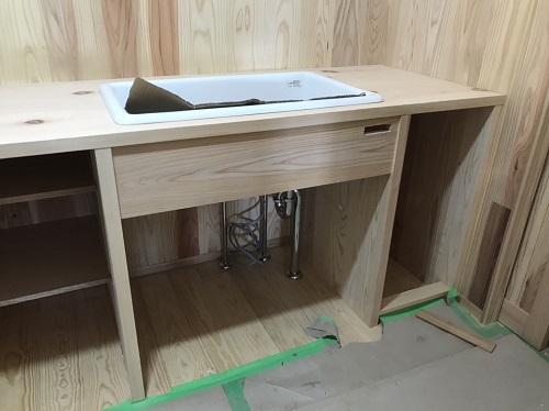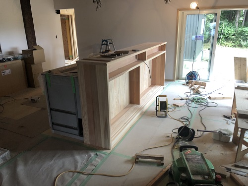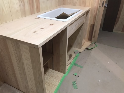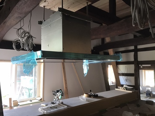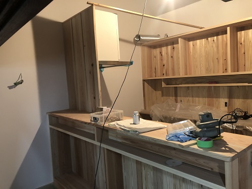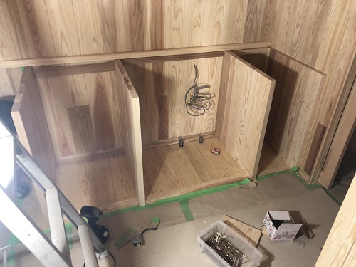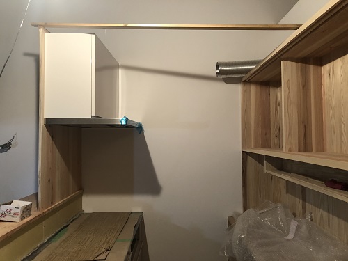 システムキッチンも取り付けられて、レンジフード取り付けを残すばかりです。