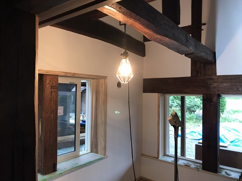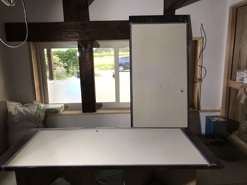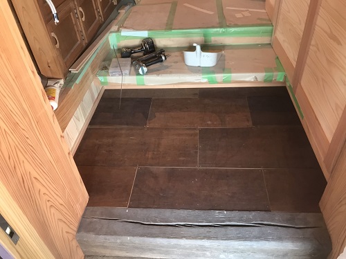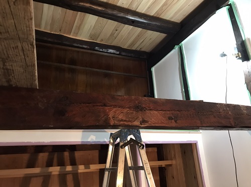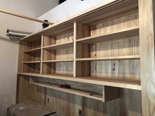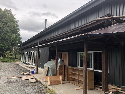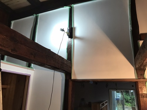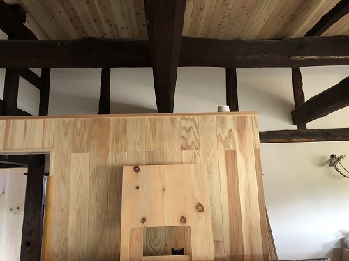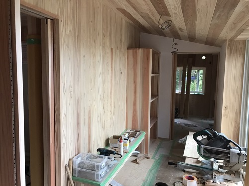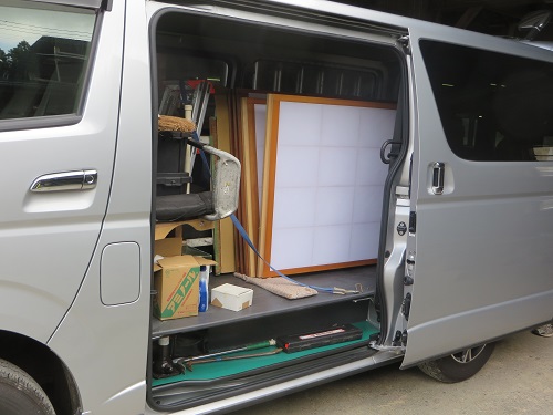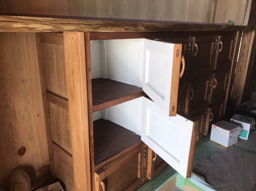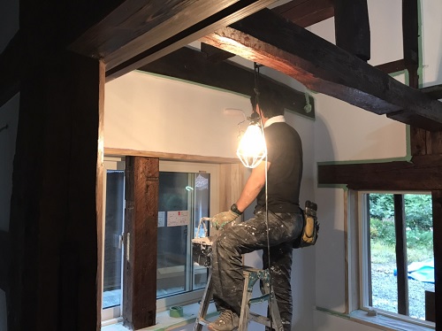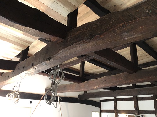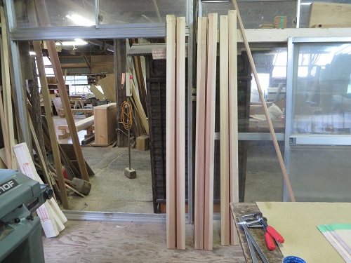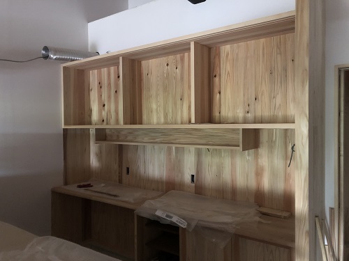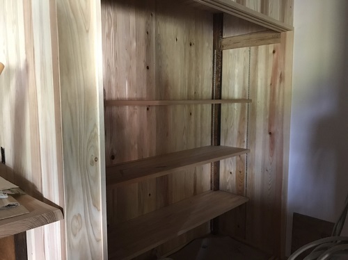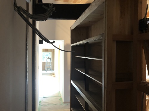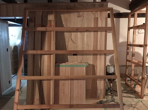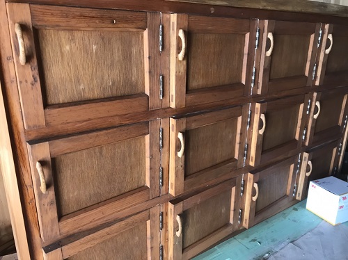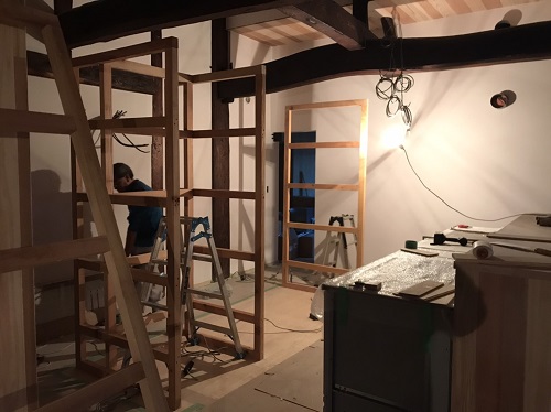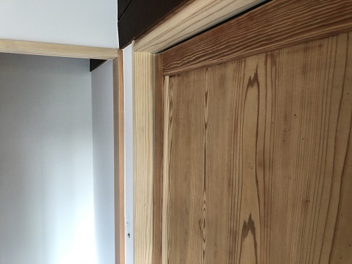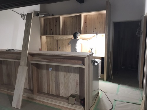 大改修現場の昨日です。古い収納棚類の再生品の設置も巣積み、今日は建具取付にも向かいました。