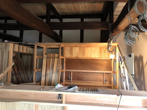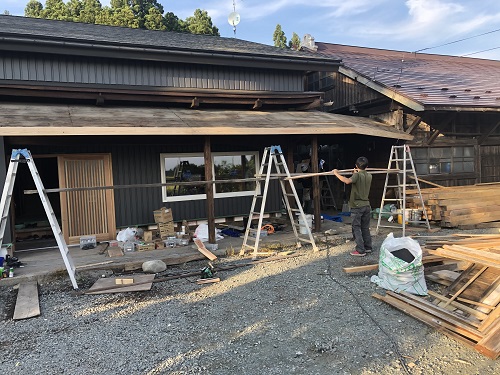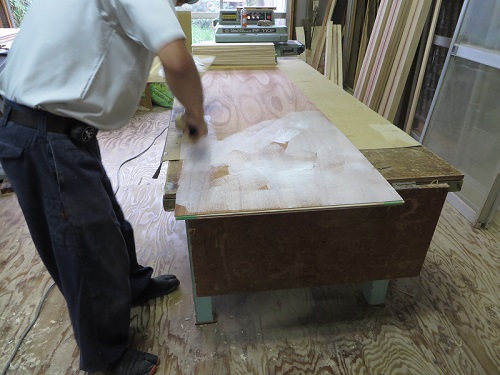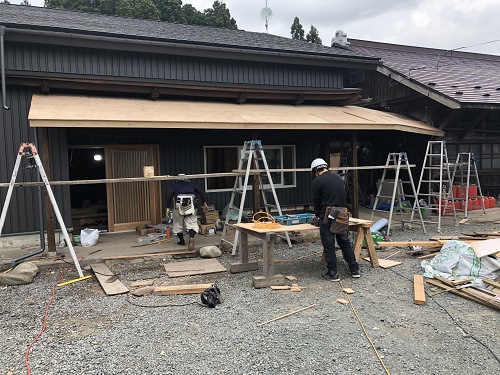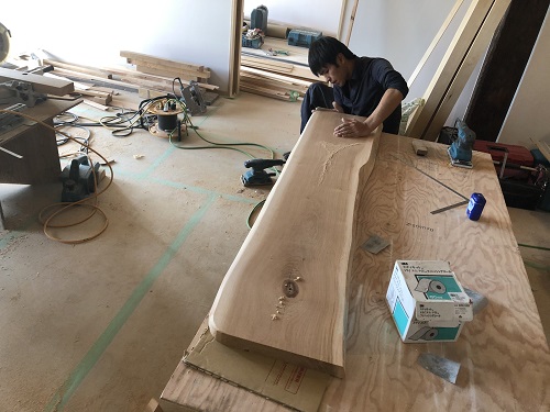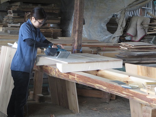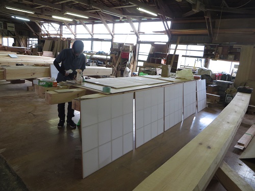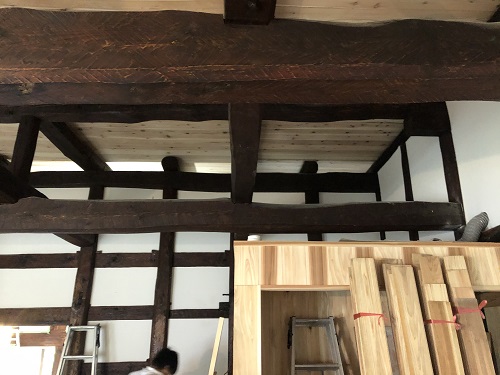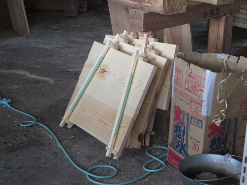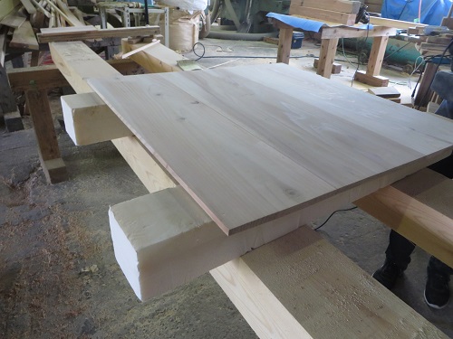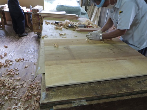 宮内庁ご用達と云われるケンポナシの一枚板はここ大改修工事現場に使われます。