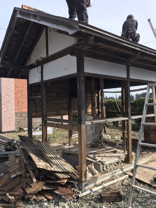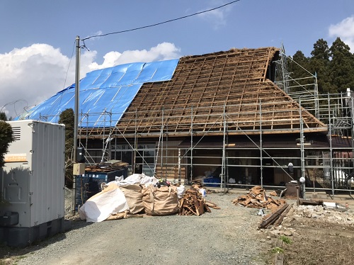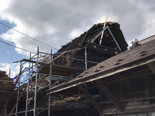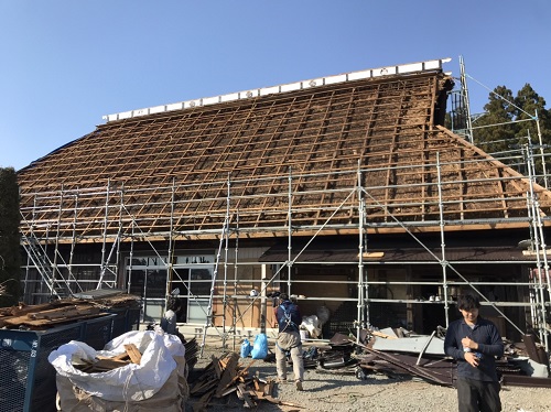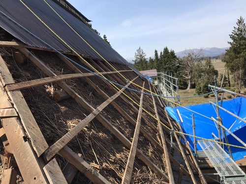 板金屋根を取り外して茅葺屋根が露わになりました。来週から茅葺屋根の本職人が茅外しの応援に来てくれる予定です。