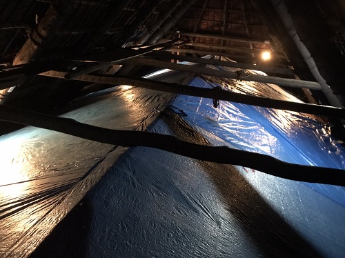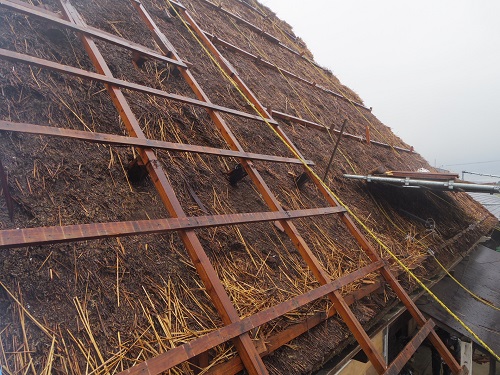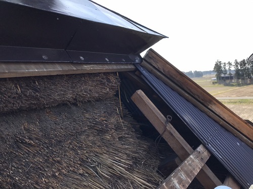 更にこの茅葺下に新しい屋根も組んであるので二重三重の用心を重ねてあります。