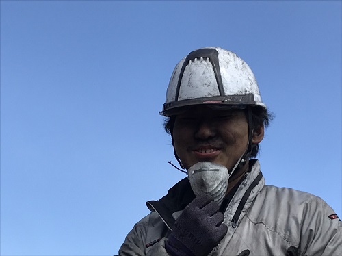 先週土曜日の茅外し現場です。皆の顔が煤だらけです・・・