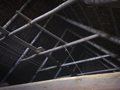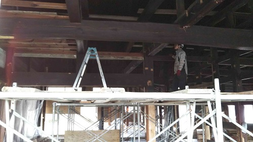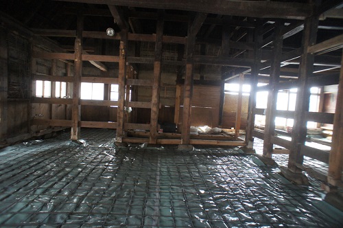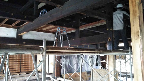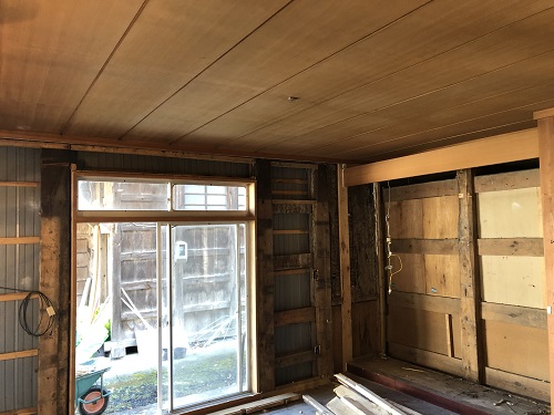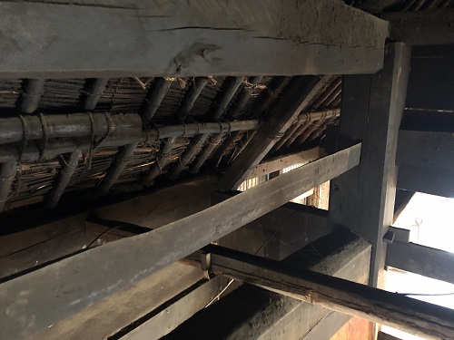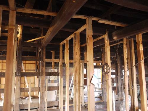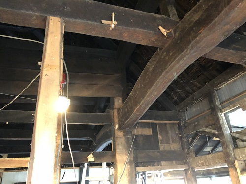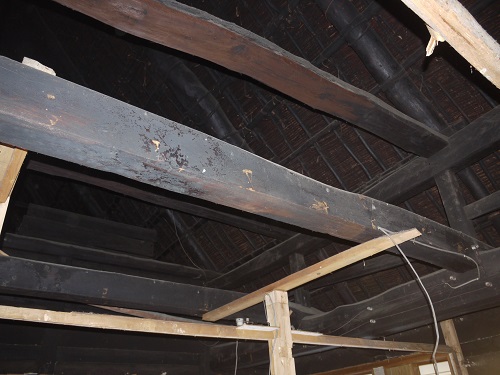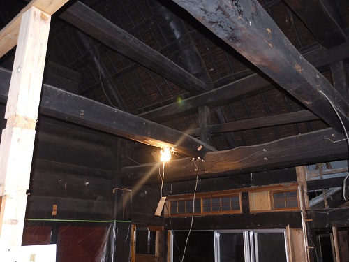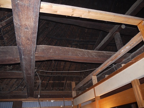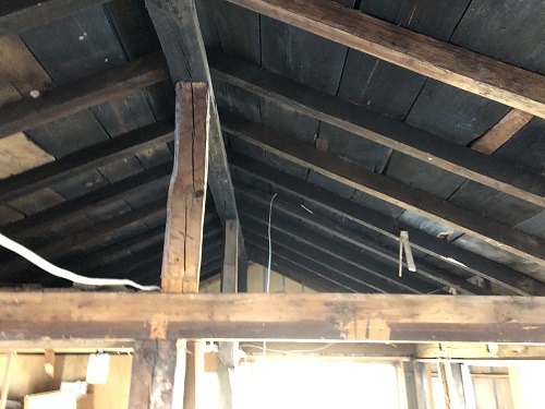 新建材の天井を取り外すとこの通りの100年前の木組みが現れました。