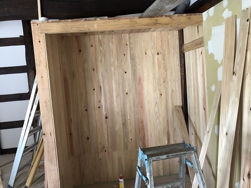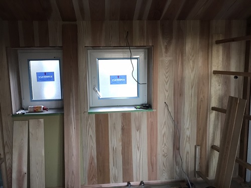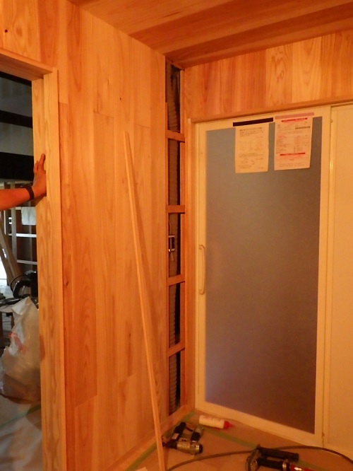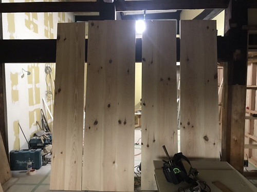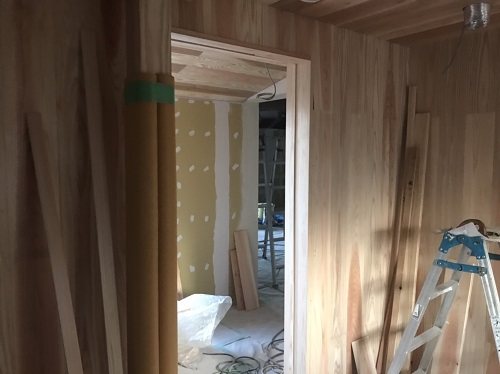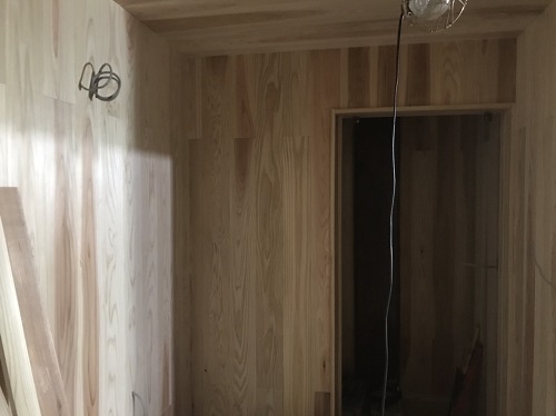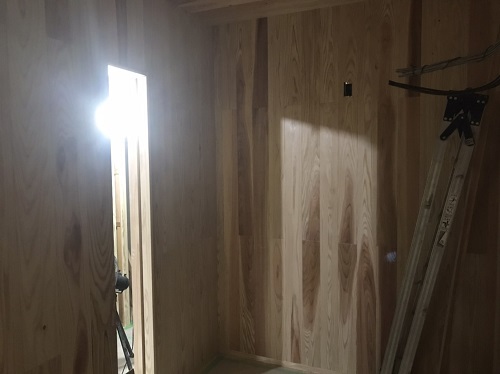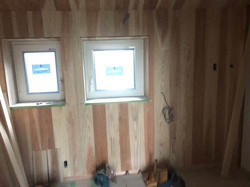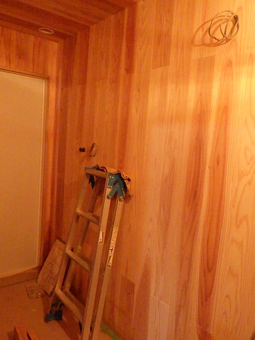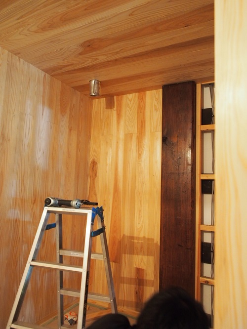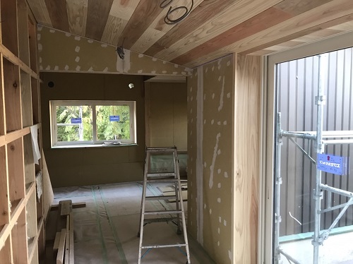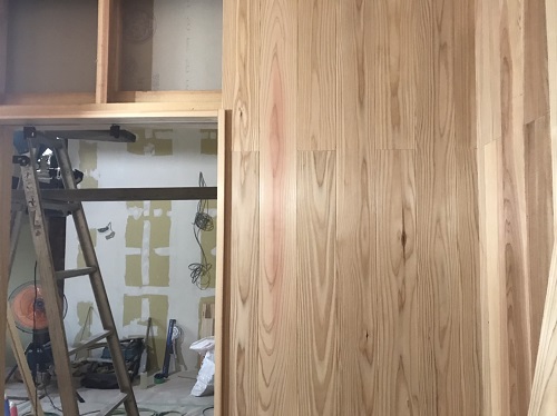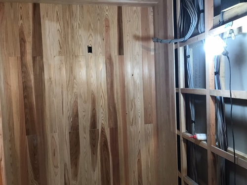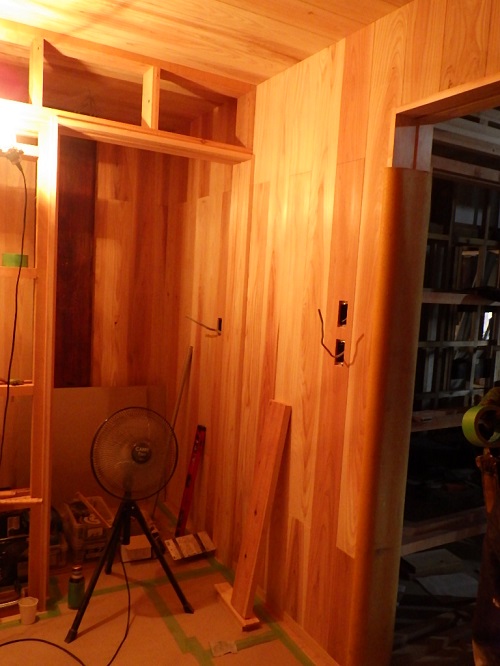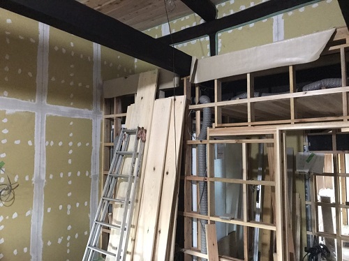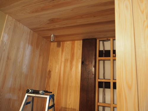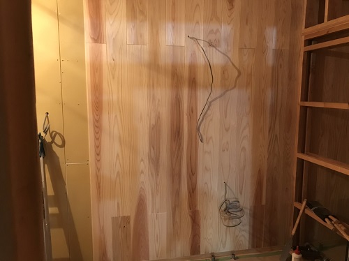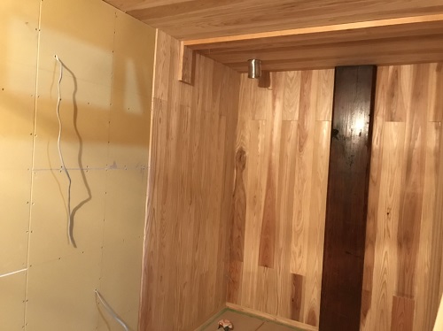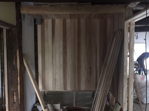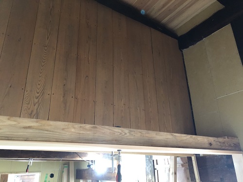 内装工事も一部仕上がって来て、板壁も大方張り上がりの大改修現場です。