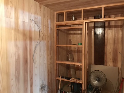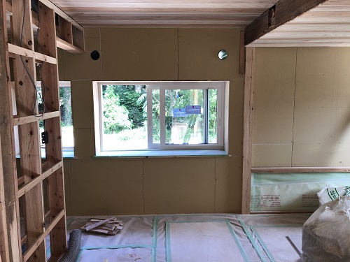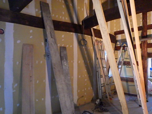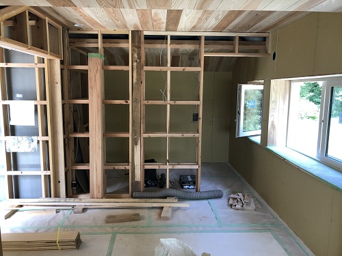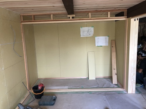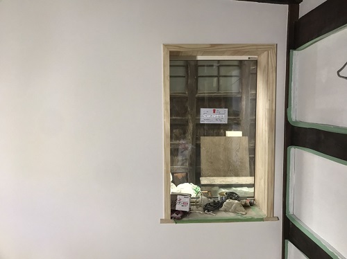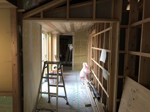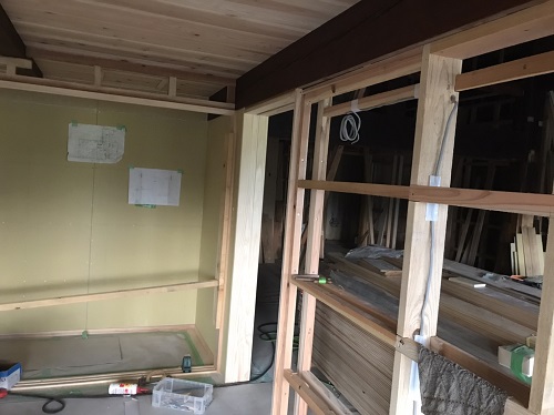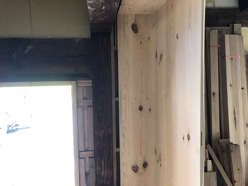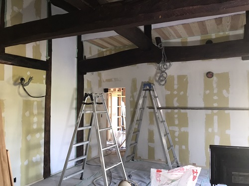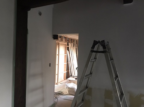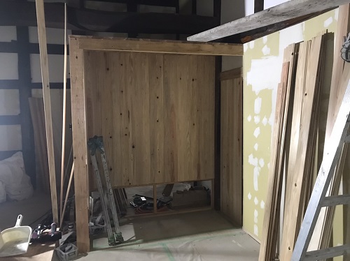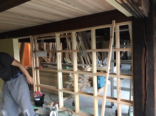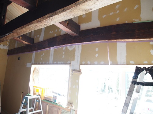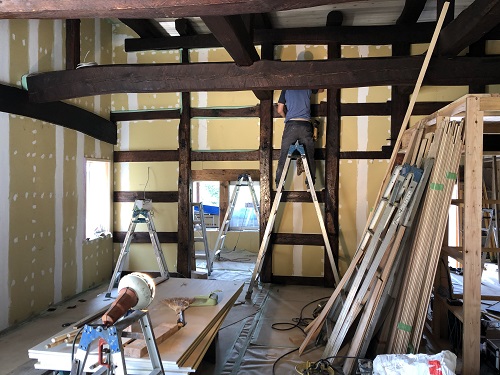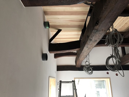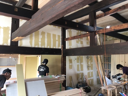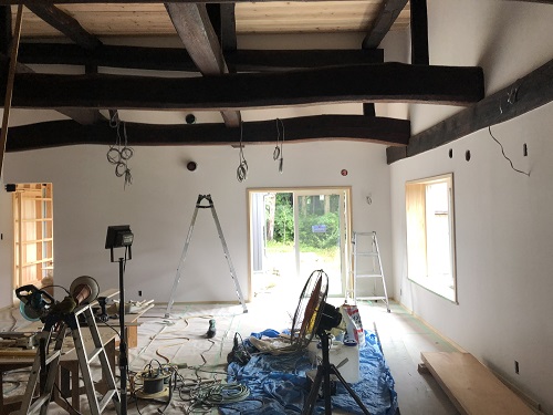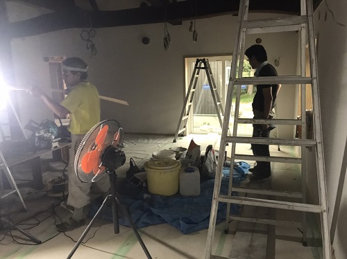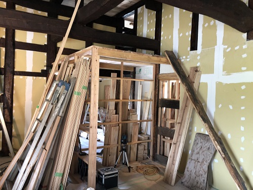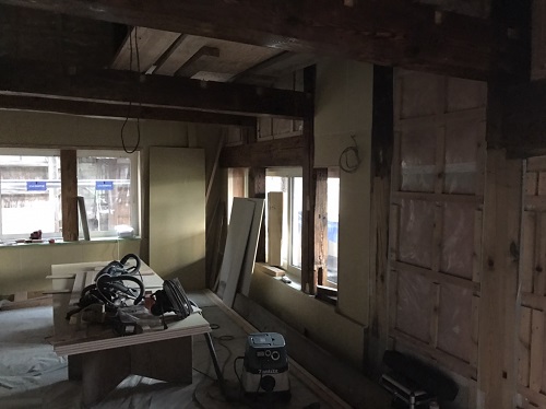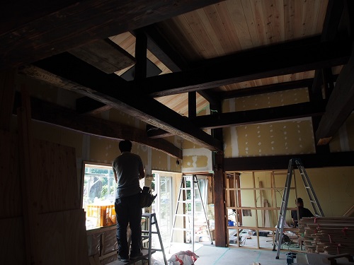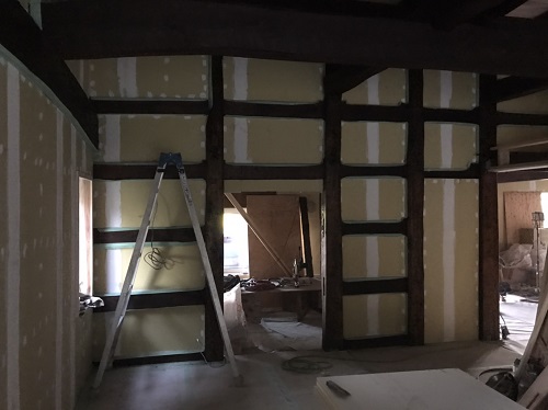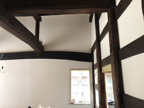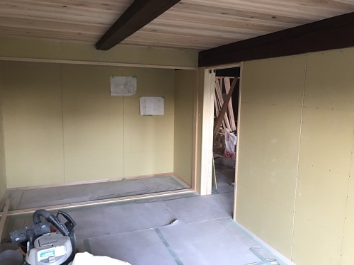 中笹間の大改修工事は、大工工事がまだ続きますが、内装のパテ打ち出来るところは同時進行で進めています。