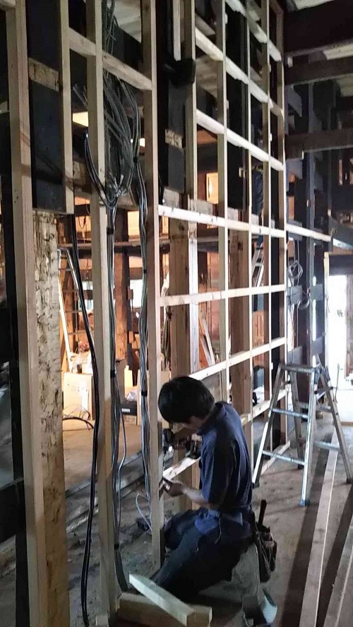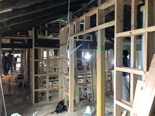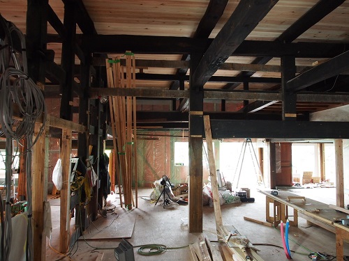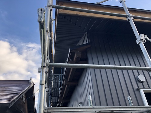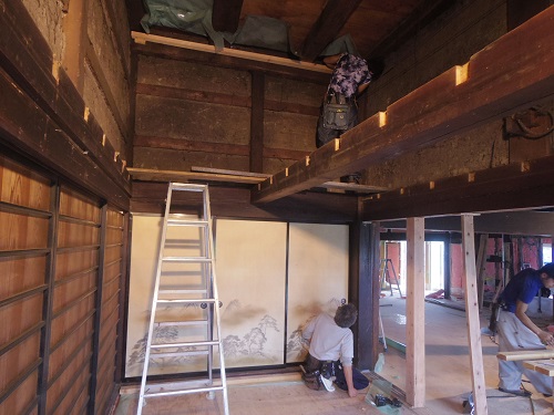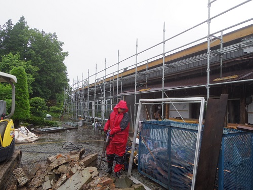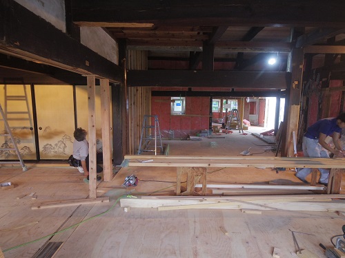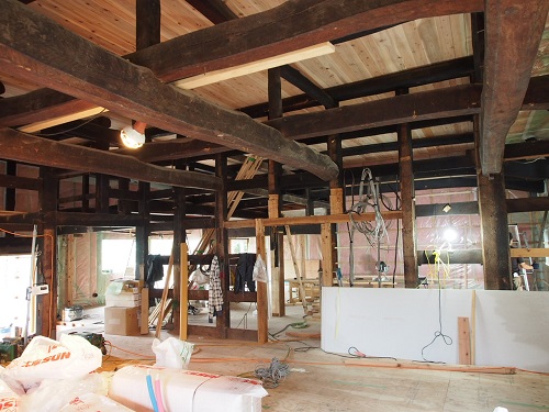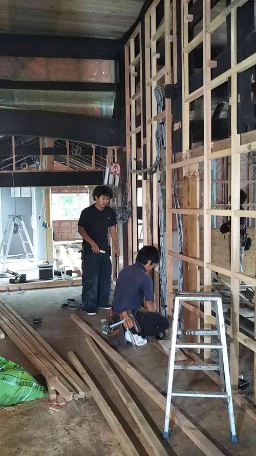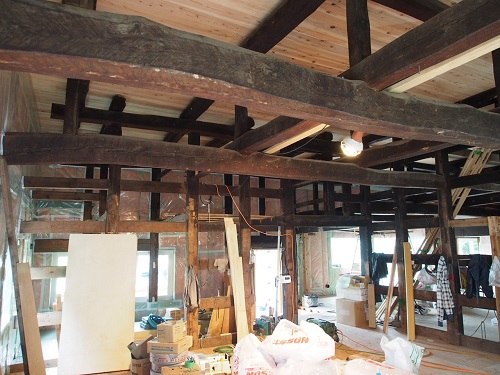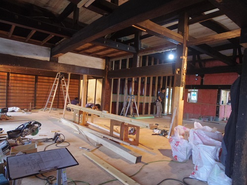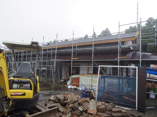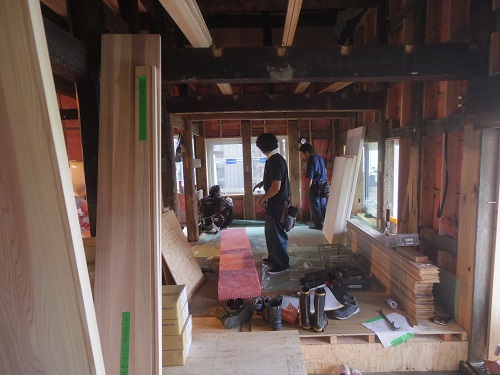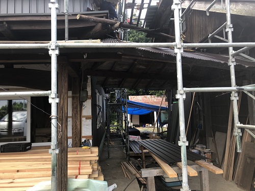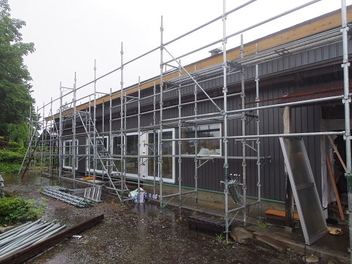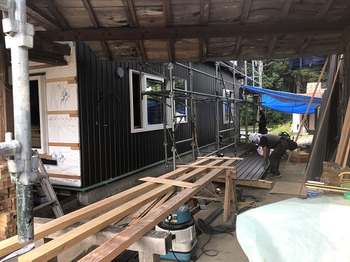 中笹間の大改修現場では、外部工事と内部工事が同時進行しています。