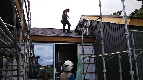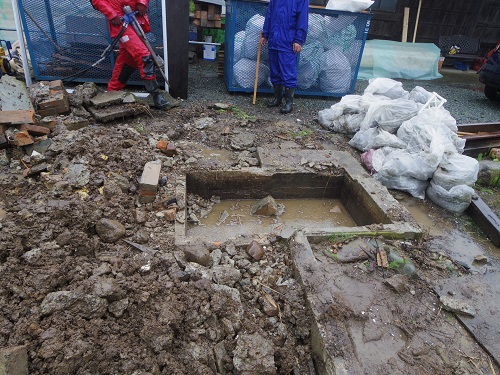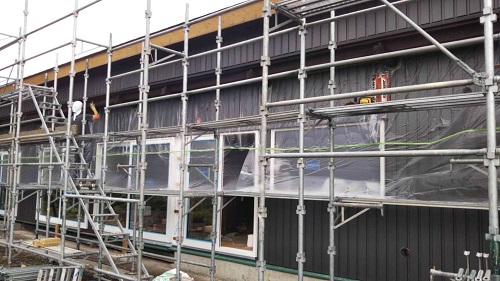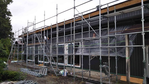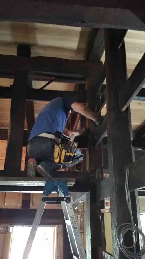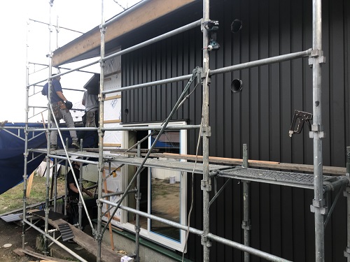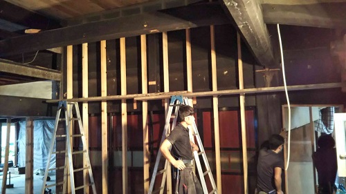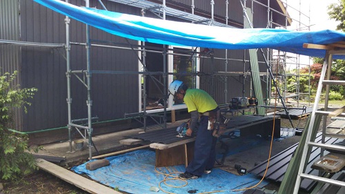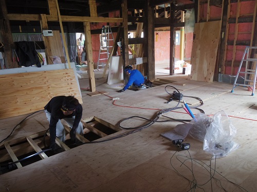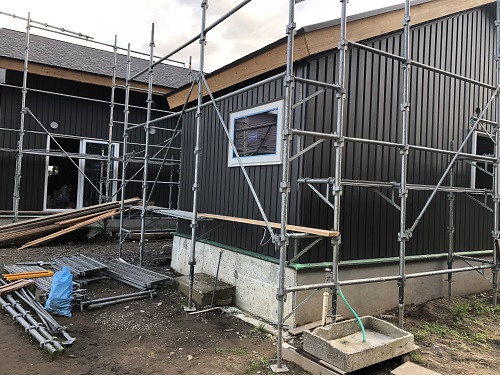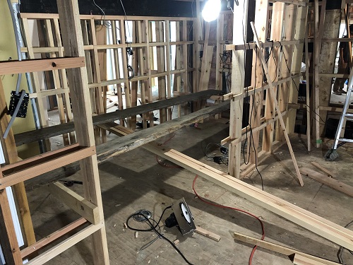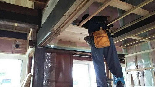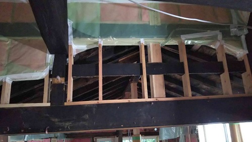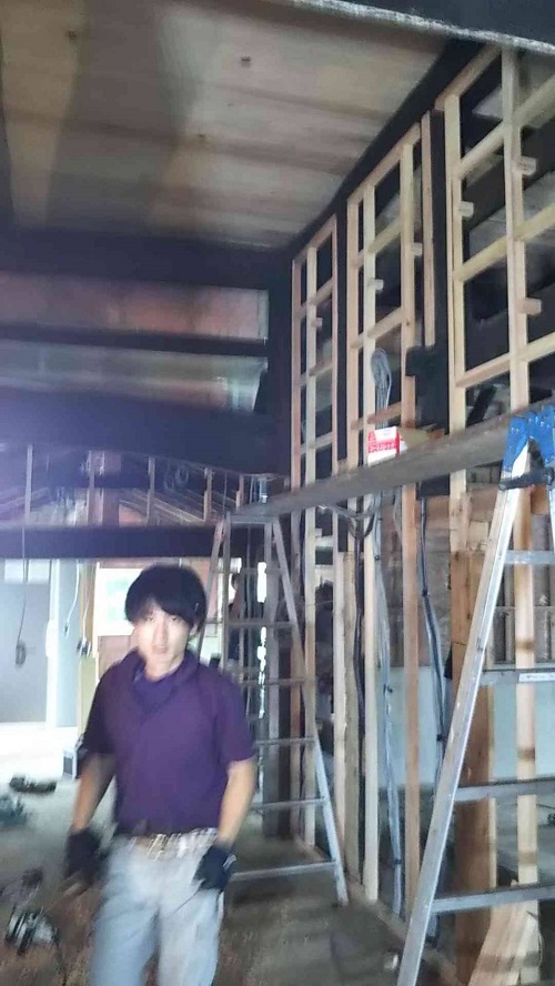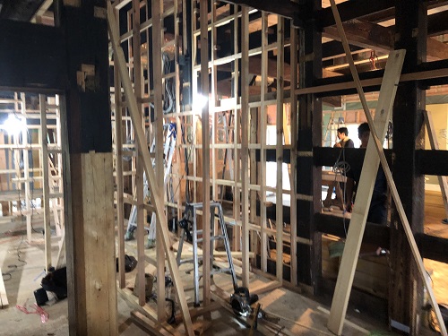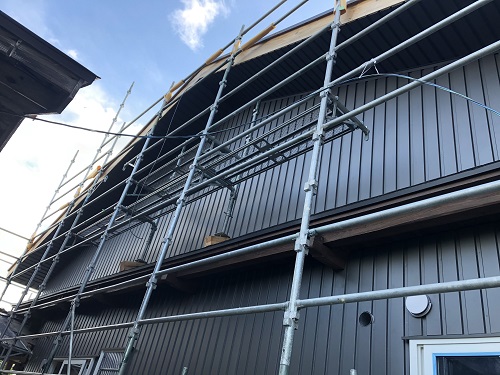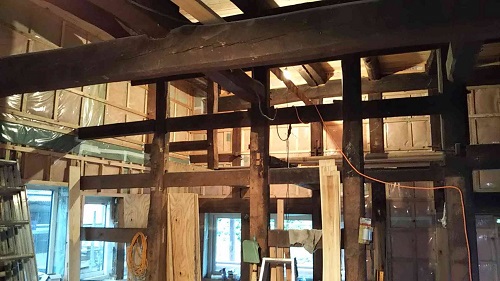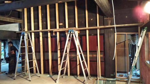 中笹間の大改修現場では、外部工事と内部工事が同時進行しています。