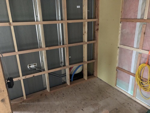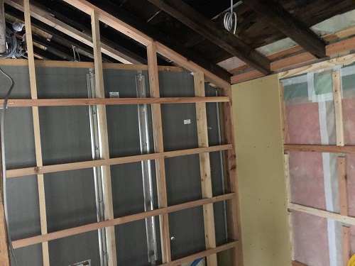 大改修現場は防湿工事と壁下地が進みユニットバスの取り付けも進みました。