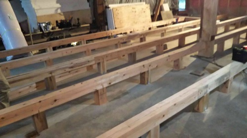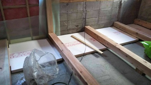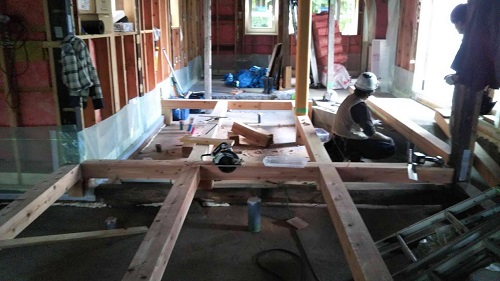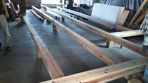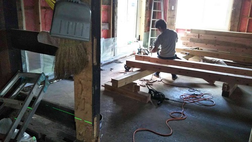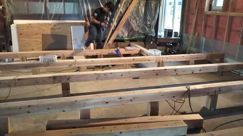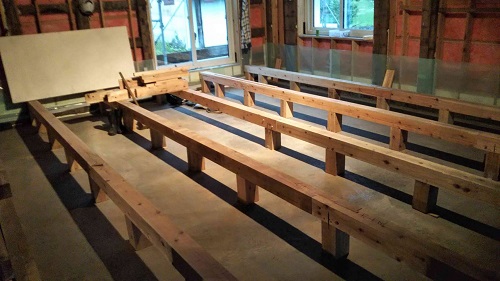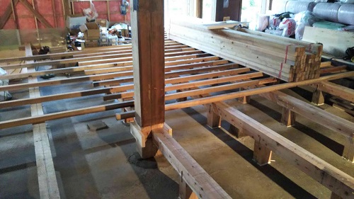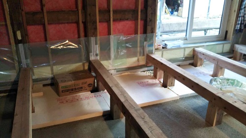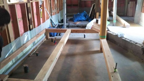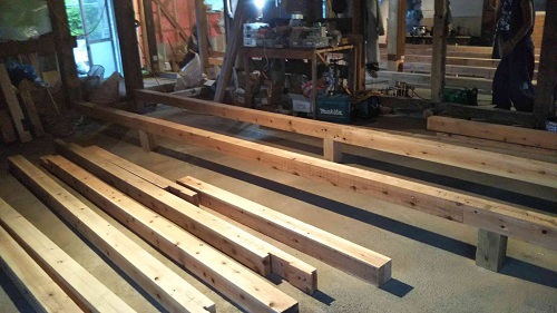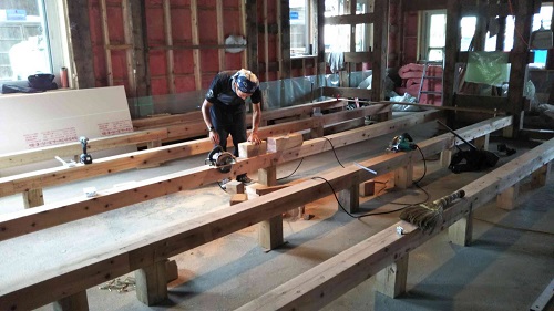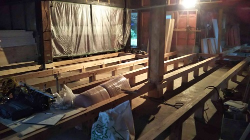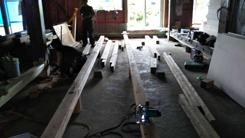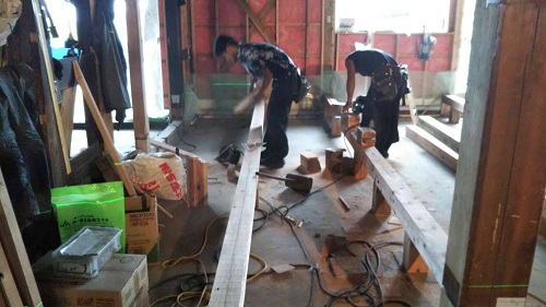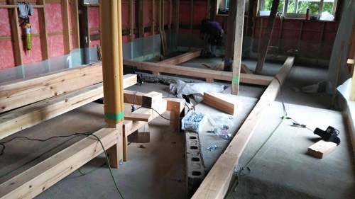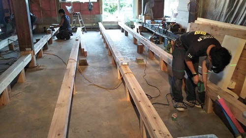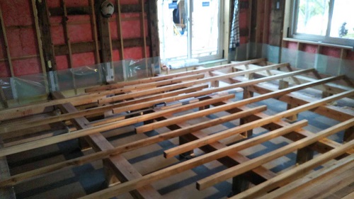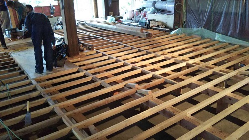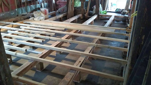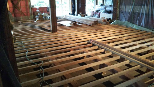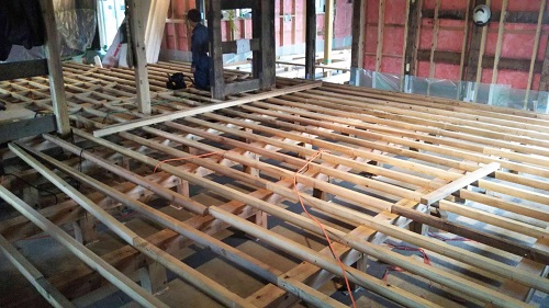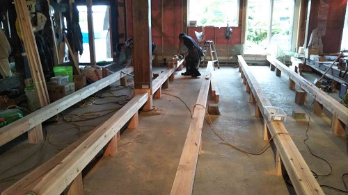 床根太の敷き並べに進んだ大改修現場です。