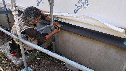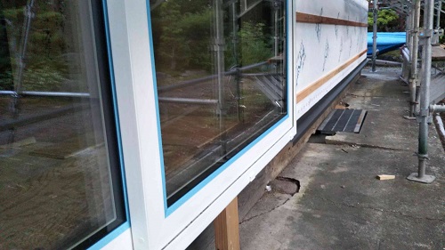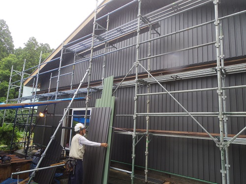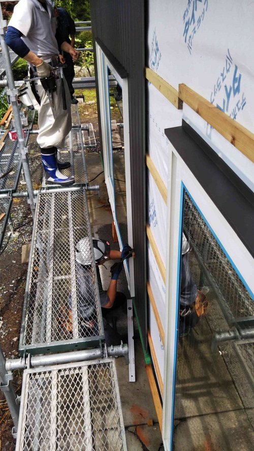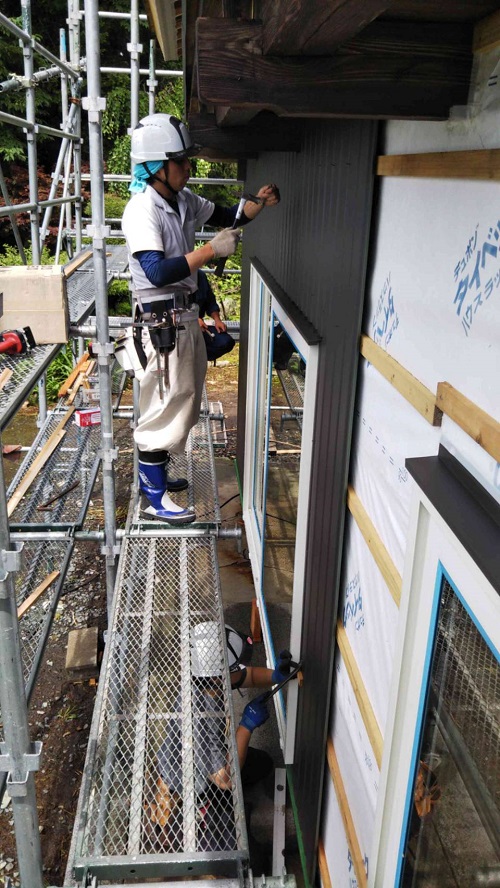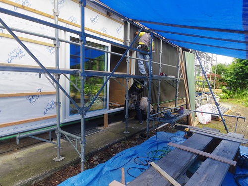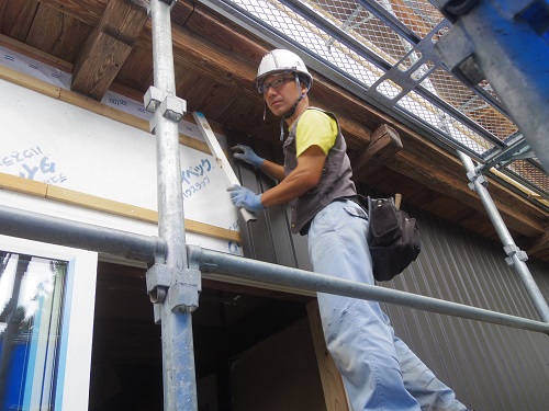 大改修現場では内部も引き続き進んでいますが、外壁工事も始まりました。