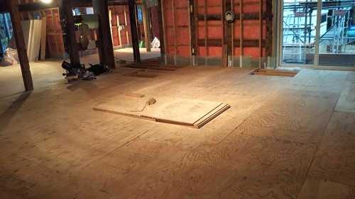 内部床合板が敷き込まれました。