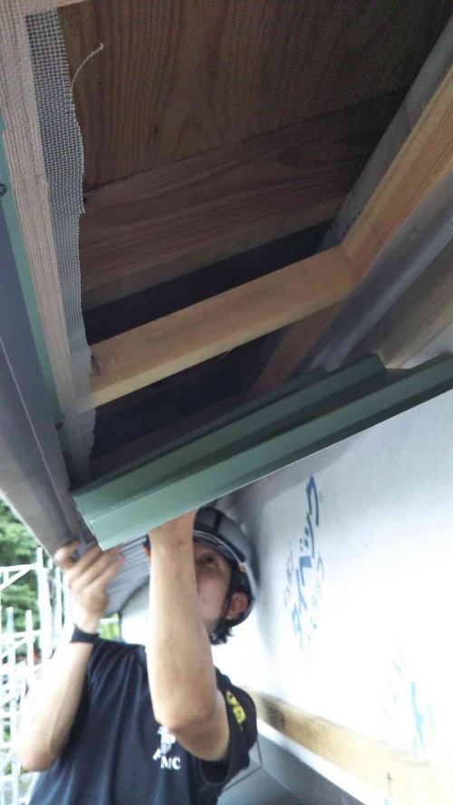 外は雨なので、内部の床下地を進めています。外部の水切りも取り付けられたので、晴れればガン壁工事を進めたいところですね。
