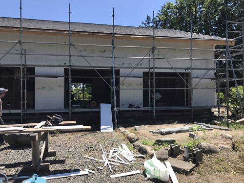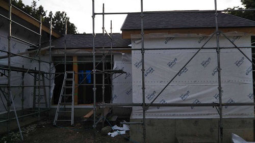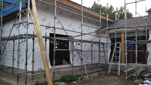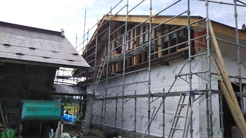 外断熱工事を進めている大改修現場ですが、応援の手だけでは全て囲い込むことが出来ず、来週の持ち越しですが、築100年でも新築と変わらない断熱性能を有する建物へと変身しますから、良い意味生みの苦しみです。