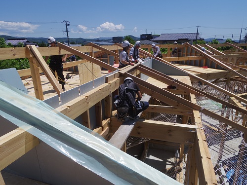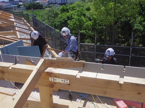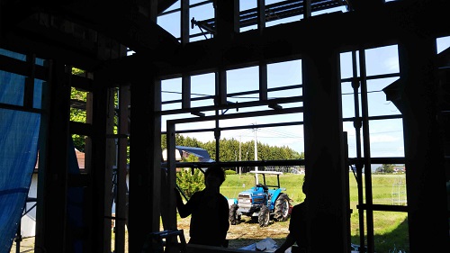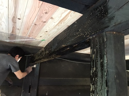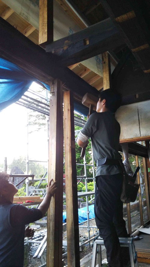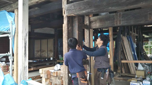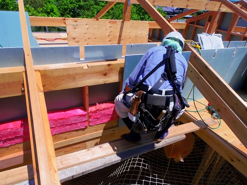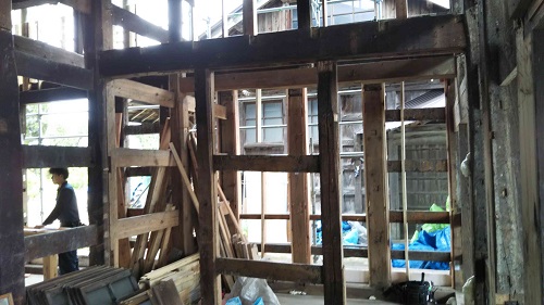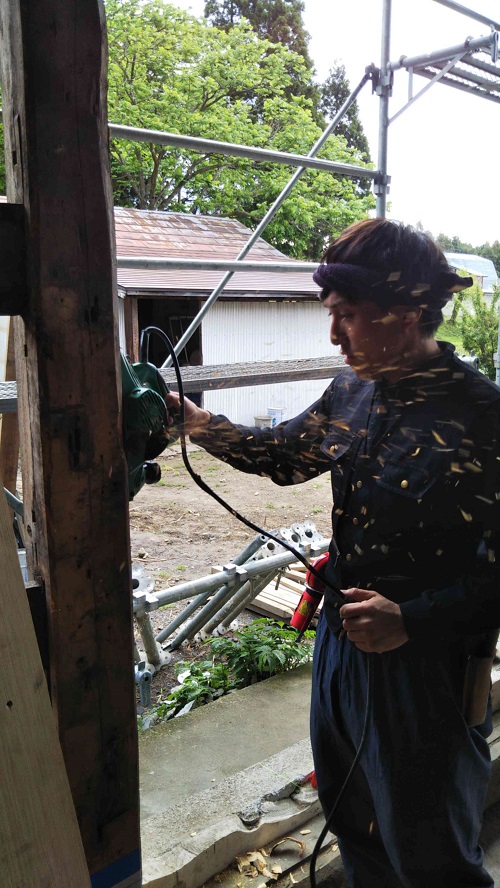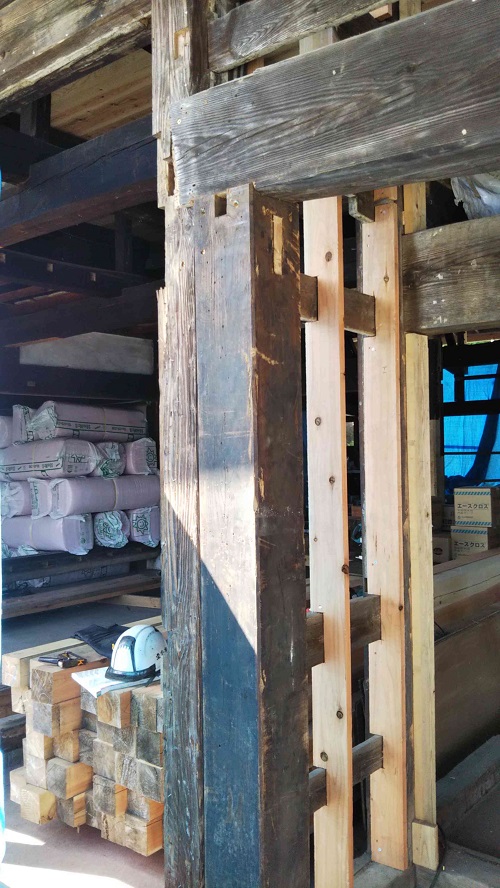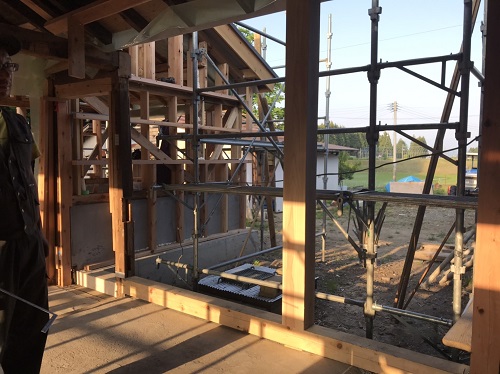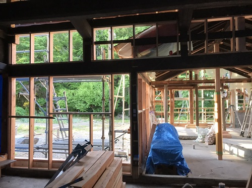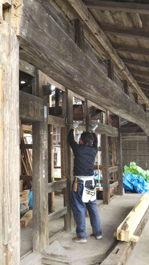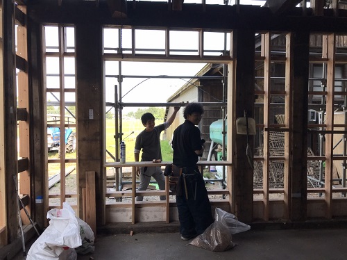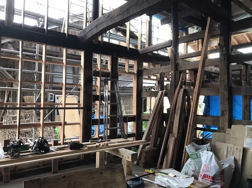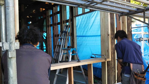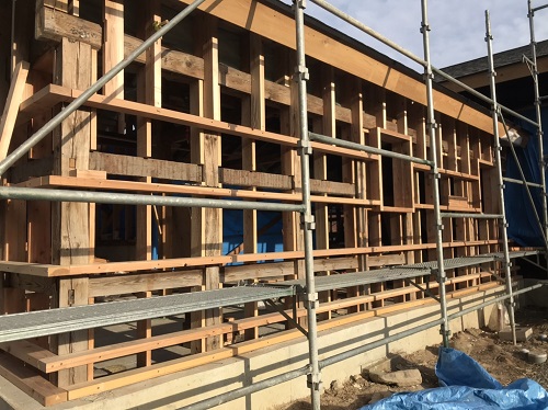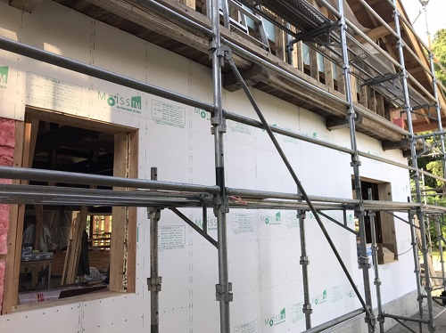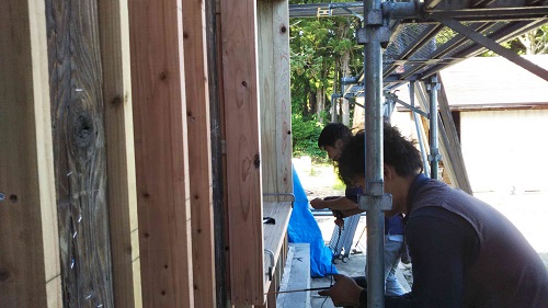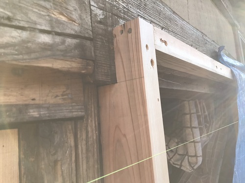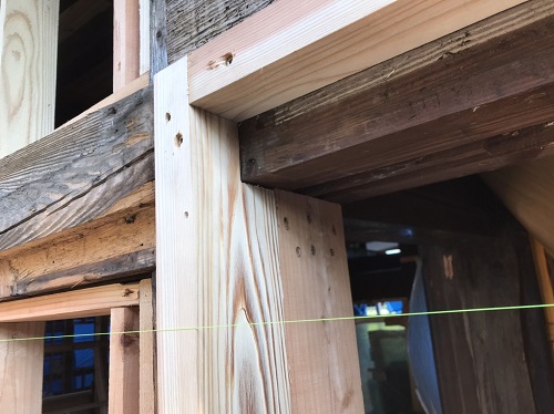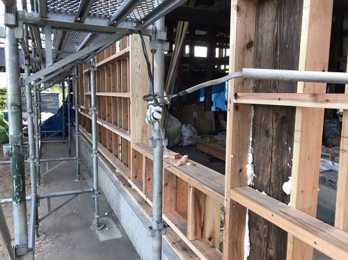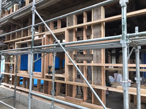 外壁下地の取り付けも築100年の経年変化に合わせる仕組みがあるので、苦戦しながらもほど良く進んでいます。